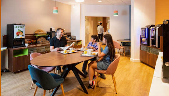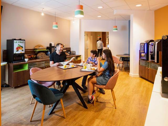 Das Hotel bietet ein reichhaltiges Frühstücksbuffet mit einer Auswahl an französischem Gebäck, frischem Brot und herzhaften Gerichten. Zudem bestehen Optionen für À-la-carte-Services im Hotelstil.
