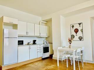 Die Ferienwohnung umfasst ein Schlafzimmer, ein Wohnzimmer, sowie eine voll ausgestattete Küche mit Kühlschrank und Kaffeemaschine. Es gibt ein Badezimmer mit Dusche und Haartrockner. Handtücher und Bettwäsche werden bereitgestellt. Die Wohnung bietet zudem Familienzimmer und hat einen Aufzug.