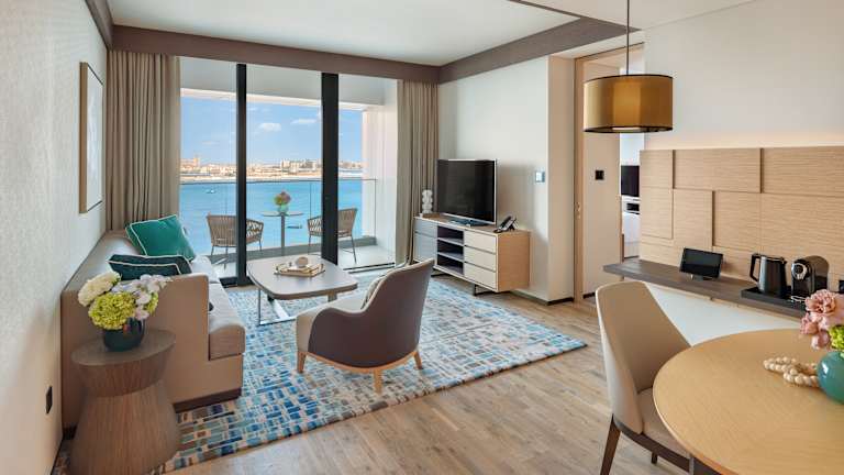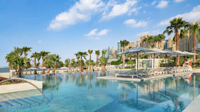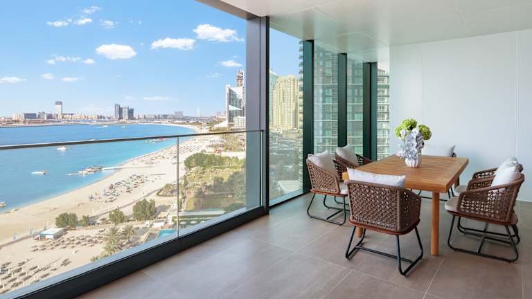 Das Address Beach Resort ist ein ikonisches Strandresort in der Jumeirah Beach Residence. Das atemberaubende Anwesen ist ein architektonisches Wunder, das aus zwei 77-stöckigen Türmen besteht, die durch eine Skybridge verbunden sind, und von allen erstklassigen Gästezimmern aus eine unglaubliche Aussicht auf den Arabischen Golf, Bluewaters Island und den herrlichen Ain Dubai bietet. Das Resort verfügt über direkten Zugang zum Strand und einige der besten Restaurants, darunter Li’Brasil und die Outdoor-Oase ZETA Seventy Seven. Mit einer Höhe von 301 Metern verfügt das Hotel über den Guinness-Weltrekord „Höchster Infinity-Außenpool in einem Gebäude der Welt“, von dem aus Gäste einen unschlagbaren Blick auf die glitzernde Skyline von Dubai und das azurblaue Wasser des JBR Beach genießen können. Das Hotel verfügt über 217 Gästezimmer und Suiten, hervorragende gastronomische Einrichtungen und unvergleichliche Einrichtungen wie mehrere Swimmingpools, ein hochmodernes Fitnessstudio und das preisgekrönte The Spa at Address. Das fantastische Anwesen ist perfekt für die ganze Familie, da es im aufregenden Qix-Kinderclub so viel zu tun gibt und das Splash Pad ideal für die Kleinen ist, um sich an Wasseraktivitäten zu erfreuen. Mit so viel zu tun und der schönen Ästhetik des Anwesens ist es der Gipfel des Luxus im Herzen von Dubai.