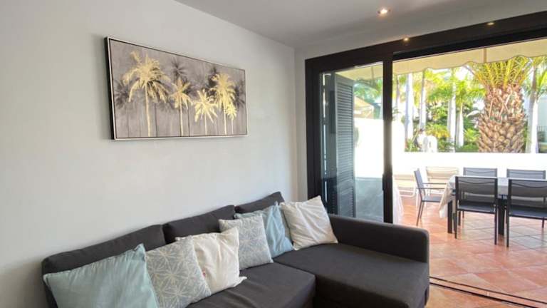 Die Ferienwohnung verfügt über zwei Schlafzimmer und ein Wohnzimmer. Zur Ausstattung gehören ein Flachbild-TV, ein Badezimmer mit Bidet sowie eine Terrasse mit Gartenblick. Es handelt sich um Nichtraucherzimmer mit einem Blick auf den Garten und die Poolanlage.