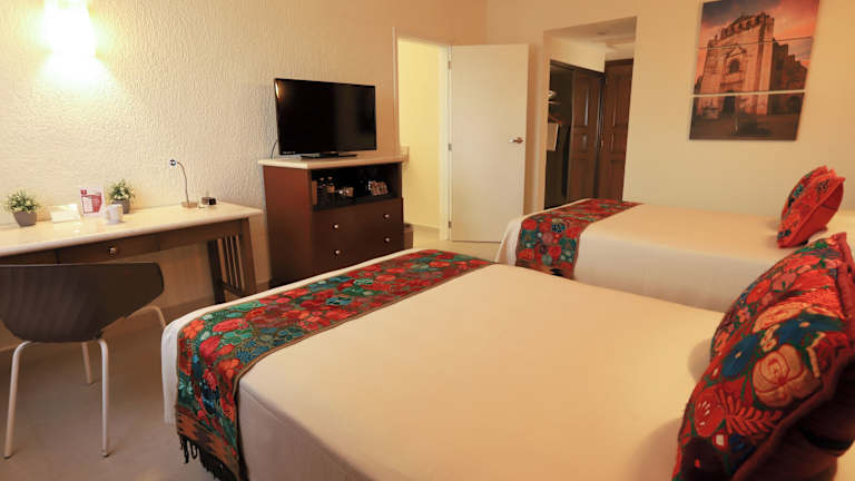 Die Zimmer im Adhara Hacienda Cancun verfügen über ein Badezimmer mit Dusche und Badewanne sowie einen Balkon oder eine Terrasse. Eine Klimaanlage sorgt für ein angenehmes Raumklima. Zur Ausstattung gehören auch ein Safe, ein Kaffee-/Teezubereiter, ein Bügelset, ein Föhn und kostenfreies WLAN.