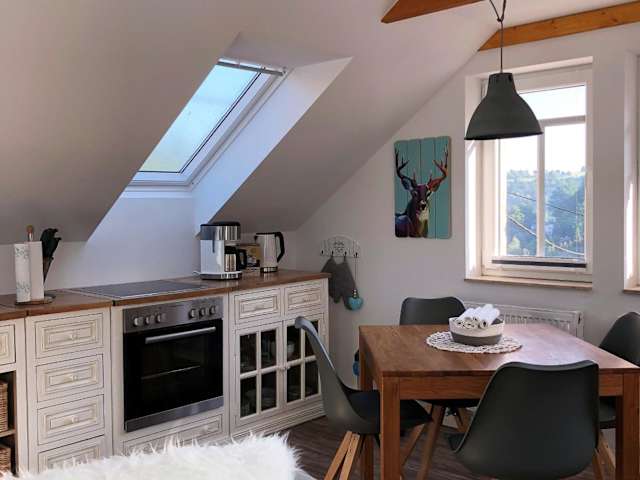 Das Adlerhorst liegt etwa 4 km von der beeindruckenden Festung Königstein entfernt. Von hier aus haben Sie einen herrlichen Blick auf die umliegenden Berge und die malerische Landschaft der Sächsischen Schweiz. In der Umgebung gibt es viele Möglichkeiten für Outdoor-Aktivitäten wie Wandern und Radfahren. Der Nationalpark Sächsische Schweiz ist nur 7,5 km entfernt und das Schloss und Park Pillnitz erreichen Sie nach 25 km. Der Flughafen Dresden ist etwa 52 km vom Adlerhorst entfernt.