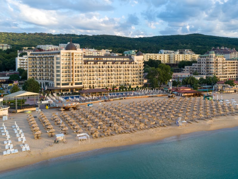 With its incredible and incomparable location in the center of the Golden Sands complex and right by the waterfront, the five-star Admiral Hotel, completely renovated for summer 2023, provides its guests with high level quality in every respect. Elegantly furnished with a wonderful combination of space and style, 300 double, family rooms (two rooms connected with an adjacent door) and suites create an exceptional atmosphere for an unforgettable perfect holiday. Experience the difference from the standard All Inclusive formula with our new 5 star Ultra All Inclusive. The outdoor pool on the seafront commands a wonderful view of the sea and is a favored place for relaxation and entertainment. A private beach extends right in front of the hotel. Modern deckchairs, parasols and towels for the beach or pool are free for hotel guests. The SPA & Wellness center offers various programs and spa procedures, 3 types of sauna – high-temperature, low-temperature and infrared, a steam bath.