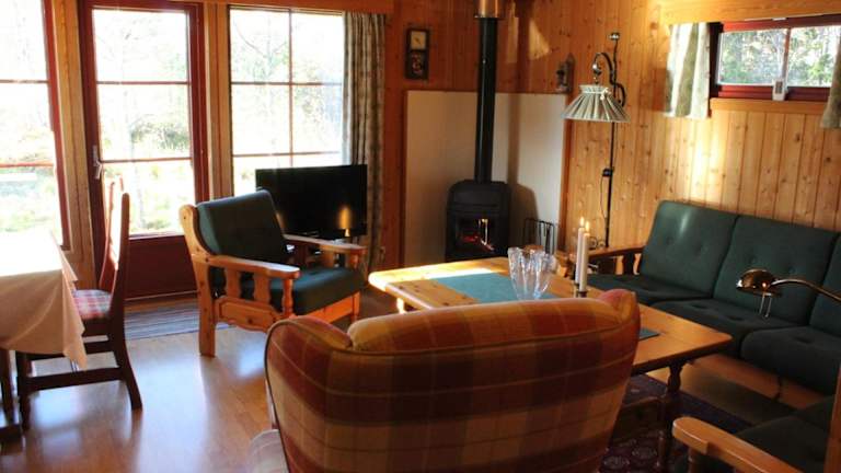 Die Lodge verfügt über komfortable Zimmer mit einem Flachbild-TV, der für Unterhaltung sorgt. Die Küche ist mit allen notwendigen Geräten wie Kühlschrank, Backofen, Geschirrspüler und Kaffeemaschine ausgestattet. Hier können Sie Ihre eigenen Mahlzeiten zubereiten und sich wie zu Hause fühlen. Die Lodge bietet auch eine Veranda, auf der Sie entspannen und die Aussicht auf den Garten genießen können.