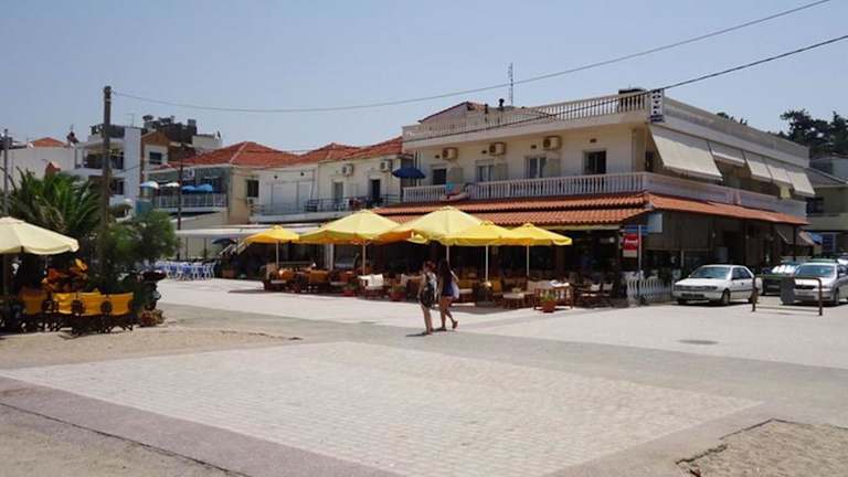 Das Aegean Hotel befindet sich in Agía Triás und bietet eine ideale Lage direkt am Strand Agia Triada. Sie können sich also jederzeit am Strand entspannen und das Meer genießen. In der Umgebung gibt es auch verschiedene Tavernen, Café-Bars und Geschäfte, die Sie bequem zu Fuß erreichen können. Der Flughafen Thessaloniki ist nur 10 km entfernt, so dass Sie schnell und einfach zu Ihrem Urlaubsort gelangen können.