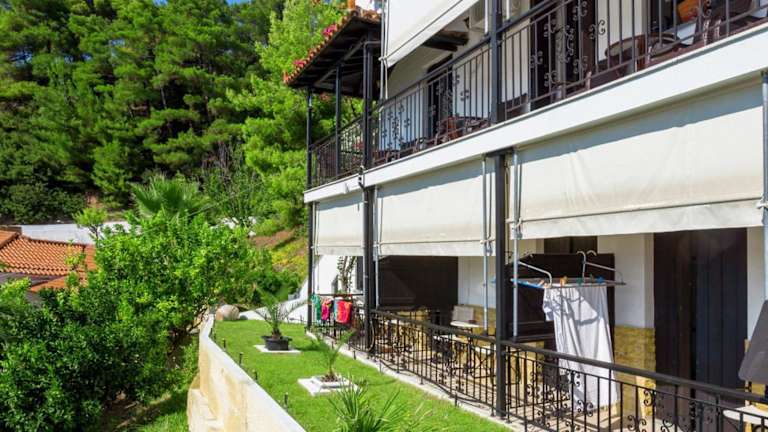 Das Aegeon Hotel liegt inmitten von Pinien und befindet sich direkt gegenüber dem charmanten Hauptort von Skopelos. Von hier aus haben Sie einen herrlichen Blick auf die Stadt und das Ägäische Meer. Der Strand ist nur etwa 1 km entfernt und die Talstation der Seilbahn von Skopelos erreichen Sie nach einem kurzen Spaziergang. In der Umgebung finden Sie auch Restaurants, Geschäfte und andere Unterhaltungsmöglichkeiten.
