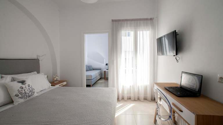 Die Aelia Apartments befinden sich nur 100 m vom Agios Georgios Strand entfernt, einem der schönsten Strände von Naxos Chora. Sie können sich also ganz einfach auf den Weg zum Strand machen und die Sonne und das Meer genießen. In der Nähe der Apartments finden Sie auch beliebte Sehenswürdigkeiten wie Portara, die Burg von Naxos und die Kirche Panagia Mirtidiotisa. Der Flughafen Naxos ist nur 3 km entfernt und die Unterkunft bietet einen kostenlosen Flughafentransfer.