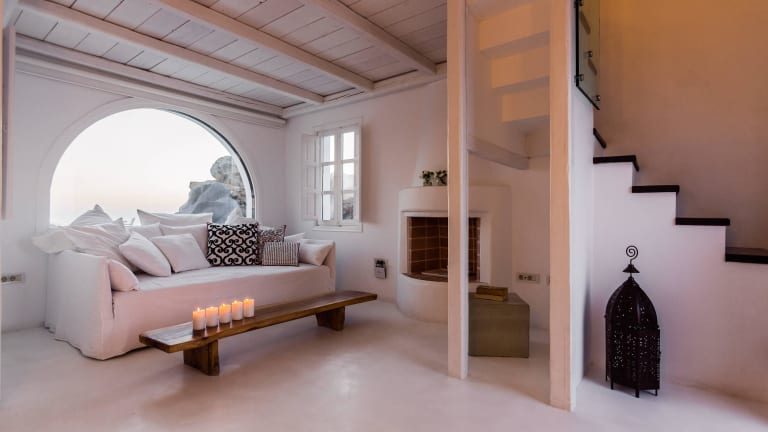 Das Aenaon Villas liegt am Rand der weltberühmten Caldera auf Santorin. Die Lage am höchsten und schmalsten Teil der Insel ermöglicht einen spektakulären Blick auf die Ägäis, die Caldera, den Vulkan und den Sonnenuntergang. Die Villen sind in einem traditionellen Stil erbaut und fügen sich harmonisch in die kykladische Architektur ein. Die Umgebung bietet viele Möglichkeiten für Erkundungstouren und Aktivitäten, darunter Wanderungen entlang der Caldera, Besuche der nahe gelegenen Dörfer und Erkundung der Strände von Santorin.