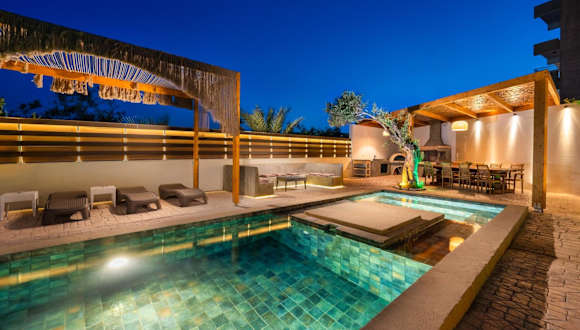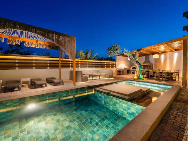 Die Villa verfügt über 4 klimatisierte Schlafzimmer, ein geräumiges Wohnzimmer und eine voll ausgestattete Küche mit Kühlschrank und Kaffeemaschine. Es gibt 2 Badezimmer mit Bidet und Dusche sowie 2 weitere Badezimmer mit Whirlpool und kostenlosen Pflegeprodukten. Handtücher und Bettwäsche werden gestellt, um Ihren Aufenthalt so angenehm wie möglich zu gestalten.