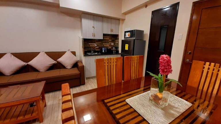 Affordable Baguio Condo- Goshenland towers bietet eine Terrasse und umfasst eine Ferienwohnung, die über zwei Schlafzimmer, ein Wohnzimmer sowie eine voll ausgestattete Küchenzeile verfügt. Die Unterkunft kann Handtücher und Bettwäsche gegen Aufpreis bereitstellen.