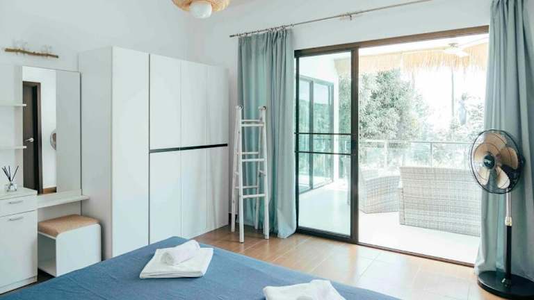 Die Villa umfasst drei Schlafzimmer, ein Wohnzimmer und eine gut ausgestattete Küche, die mit einem Kühlschrank und einer Mikrowelle ausgestattet ist. Handtücher und Bettwäsche werden zur Verfügung gestellt.