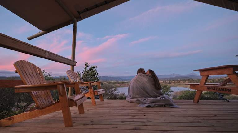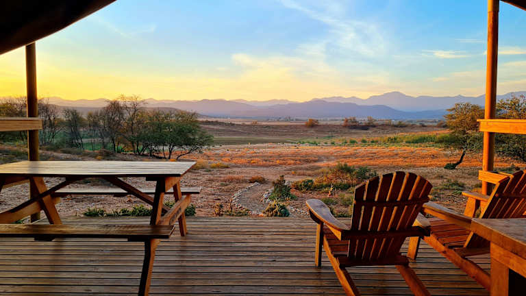 Genießen Sie ein optionales Frühstück, das in einem Korb direkt in Ihr Zelt geliefert wird. Bereiten Sie sich Ihr Frühstück selbst zu und genießen Sie es auf Ihrer eigenen Holzterrasse mit Blick auf die malerische Umgebung. Sie haben auch die Möglichkeit, in Oudtshoorn in den zahlreichen Restaurants und Cafés lokale Köstlichkeiten zu probieren.