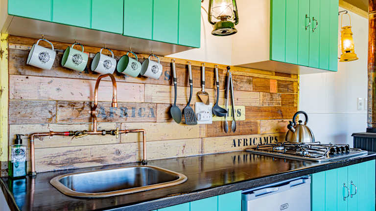 Die Luxus-Zelte im AfriCamps Klein Karoo bieten geräumige und komfortable Unterkünfte für Ihren Aufenthalt. Jedes Zelt verfügt über einen großzügigen offenen Wohnbereich, eine voll ausgestattete Küche und einen Essbereich. Es gibt auch zwei Schlafzimmer, eines davon mit einem zusätzlichen Hochbett. Die Zelte sind klimatisiert und verfügen über gemütliche Kamine für kühle Abende. Die privaten Badezimmer sind mit Warmwasserduschen, Waschbecken und Toiletten ausgestattet.