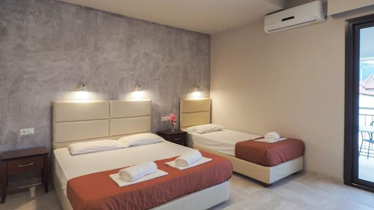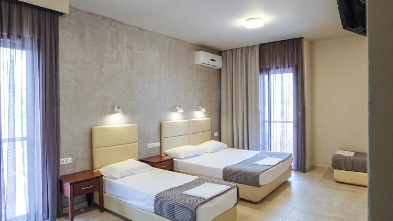 Die klimatisierten Zimmer im Afrodite Beach Hotel sind hell und schlicht eingerichtet. Jedes Zimmer verfügt über einen eigenen Balkon, auf dem Sie die frische Luft und die Aussicht genießen können. Zur Ausstattung gehören ein Flachbild-TV, ein Minikühlschrank und ein eigenes Bad mit Dusche.