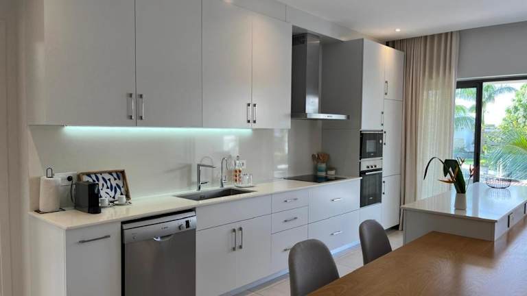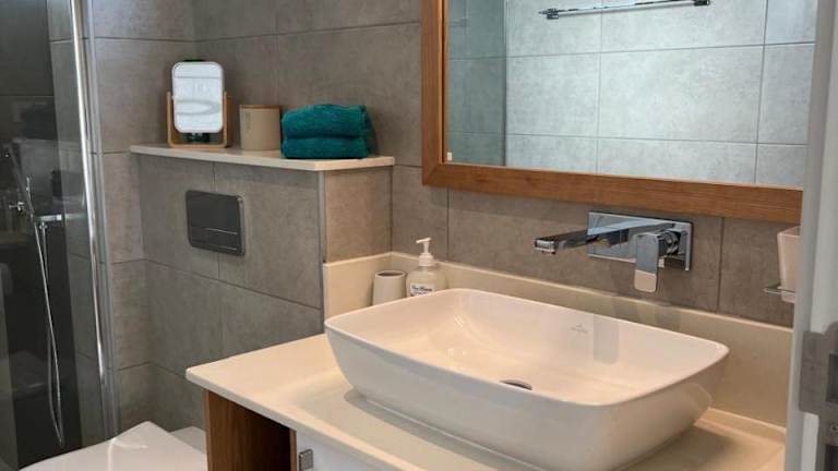 Die Ferienwohnung ist ausgestattet mit 2 Schlafzimmern, 2 Badezimmern, Bettwäsche, Handtüchern, einem Flachbild-TV mit Satellitenkanälen, einem Essbereich, einer voll ausgestatteten Küche sowie einer Terrasse mit Gartenblick.