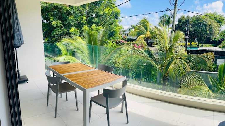 Agalega Appart de standing 2Ch Sdb 2 min plage ist eine Ferienwohnung, die Übernachtungsmöglichkeiten mit kostenlosem WLAN, Klimaanlage, einem Außenpool und einem Garten bietet. Die Unterkunft ermöglicht den Zugang zu einem Balkon und einem kostenlosen Privatparkplatz.