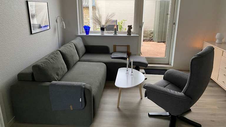 Die Ferienwohnung verfügt über 1 Schlafzimmer, ein Wohnzimmer und eine voll ausgestattete Küche mit Kühlschrank und Kaffeemaschine. Das Badezimmer ist mit einer Dusche und einem Haartrockner ausgestattet. Handtücher und Bettwäsche sind in der Unterkunft vorhanden.