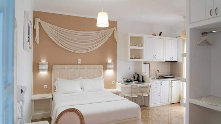 Aggelos Studios bietet eine klimatisierte Ferienwohnung mit einem Garten, einer Terrasse und Zimmerservice. In der Unterkunft sind Nichtraucherzimmer vorhanden. Es wird ein Privatparkplatz angeboten, der kostenlos genutzt werden kann. Die Unterkunft wird von einem privaten Gastgeber geführt und erlaubt keine Feiern oder ähnliche Veranstaltungen. Mindestalter für den Check-in ist 18 Jahre. Haustiere sind nicht gestattet.
