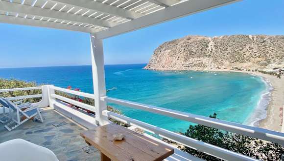 Die Agia Kyriaki Studios befinden sich direkt am Strand von Agia Kiriaki, was Ihnen die Möglichkeit bietet, die traumhafte Küste und das kristallklare Wasser in vollen Zügen zu genießen. Der Hafen Adamas ist nur 9 km entfernt und bietet eine gute Anbindung an andere Teile der Insel. Der nationale Flughafen Milos ist ebenfalls in der Nähe, nur 4 km entfernt, so dass Sie bequem an- und abreisen können.