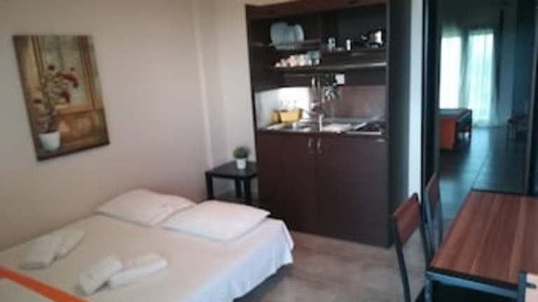 Die Unterkunft Agnanti Studios befindet sich in Afytos, etwa 1,6 km vom Strand Liosi entfernt. Der nächstgelegene Flughafen ist Thessaloniki, der sich in einer Entfernung von 73 km befindet.
