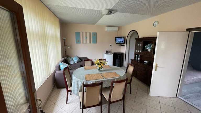 Das Ágnes Nyaralóház in Balatonmáriafürdő ist eine ideale Unterkunft für einen entspannten Urlaub am Balaton. Mit einem eigenen Pool und kostenfreiem WLAN bietet dieses Ferienhaus alle Annehmlichkeiten, die Sie für einen angenehmen Aufenthalt benötigen. Die zentrale Lage ermöglicht es Ihnen, die umliegenden Sehenswürdigkeiten wie das Balaton-Museum und das Schloss Festetics zu erkunden.