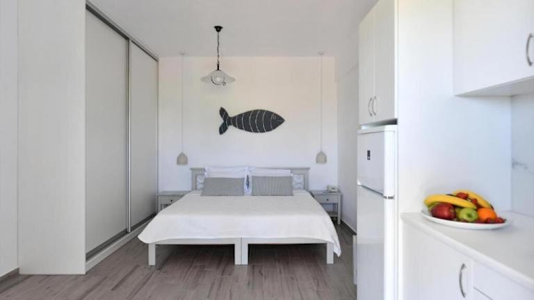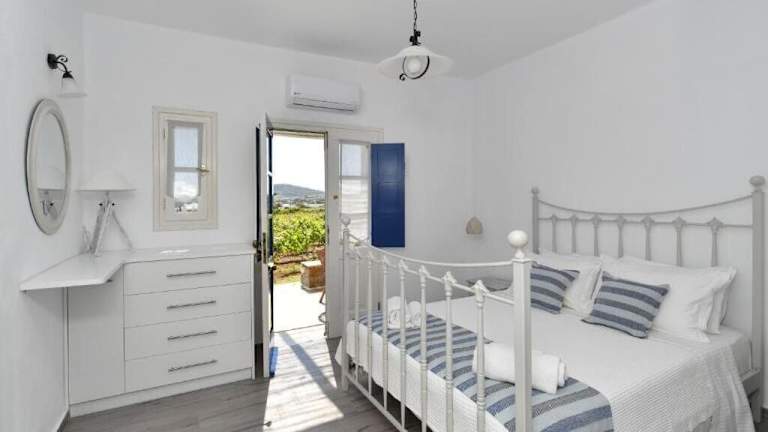 Die Studios und Apartments im Agrabeli Paros sind im traditionellen Kykladen-Stil eingerichtet und bieten eine gemütliche Atmosphäre. Jede Unterkunft verfügt über eine Küchenzeile, in der Sie Ihre eigenen Mahlzeiten zubereiten können. Die schmiedeeisernen Betten und Moskitonetze sorgen für einen erholsamen Schlaf. Zur weiteren Ausstattung gehören Klimaanlage, Sat-TV und ein Haartrockner. Die geräumigen Veranden sind mit Bambusmöbeln ausgestattet und bieten einen herrlichen Blick auf den Weinberg.