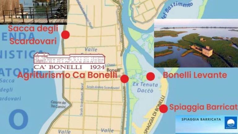 Die Unterkunft befindet sich im Po-Delta, einem weitläufigen Reisbauernhof mit einer Fläche von 450 Hektar. Der Yachthafen Porto Barricata liegt 3,5 km entfernt, und der Strand Bonelli ist in zwei Kilometern erreichbar. Die Nationalstraße SS309 ist 27 km entfernt.