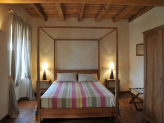 Der Agritourismus verfügt über 9 Zimmer, von denen eines im Erdgeschoss liegt und barrierefrei ist. Alle Zimmer sind Doppelzimmer, einige mit Doppelbett, andere mit zwei Einzelbetten. Ein drittes Bett kann dazugestellt werden. Alle Zimmer bieten einen Ausblick auf die umliegende Landschaft und spiegeln das ländliche Ambiente wider, unterscheiden sich jedoch in ihrer Einrichtung, wie zum Beispiel den Vorhangstoffen und Tagesdecken, die je nach dem Stil des Zimmers unterschiedlich sind. Entdecken Sie den persönlichen Charakter eines jeden Zimmers!