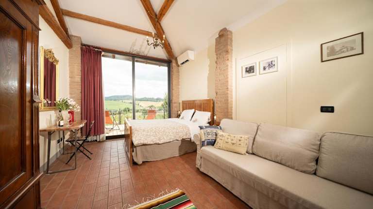 Beginnen Sie Ihren Tag mit einem reichhaltigen Frühstücksbuffet, das aus Bio-Produkten vom Bauernhof der Unterkunft besteht. Hier finden Sie unter anderem Eier, Obst und hausgemachte Kuchen. Auf Anfrage können auch vegane, vegetarische und glutenfreie Optionen arrangiert werden. Bei Ihrer Ankunft werden Sie außerdem mit einem Glas Wein aus den eigenen Weinbergen begrüßt.