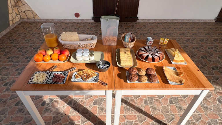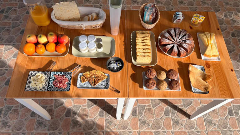 Morgens erwartet Sie ein leckeres Frühstücksbuffet im Agriturismo Graziano e Barbara. Hier finden Sie eine Auswahl an Käse, Eiern, Müsli, Joghurt und Kuchen, um gestärkt in den Tag zu starten. Im Garten des Agriturismo steht Ihnen auch ein Grillplatz zur Verfügung, so dass Sie Ihre eigenen Mahlzeiten zubereiten können.