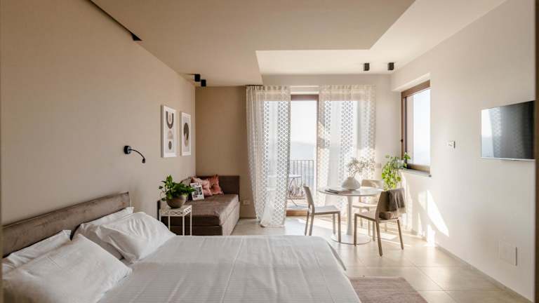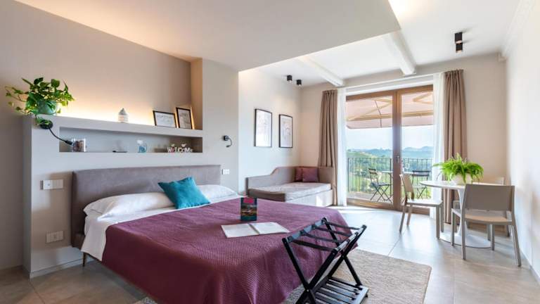 Die Apartments im Il Cortile Suites bieten eine komfortable Unterkunft mit einem Hauch von Luxus. Jedes Apartment verfügt über einen eigenen Balkon, von dem aus Sie die herrliche Aussicht auf die umliegenden Weinberge genießen können. Die Apartments sind geräumig und verfügen über eine gut ausgestattete Küche, in der Sie Ihre eigenen Mahlzeiten zubereiten können. Zur Ausstattung gehören auch ein Flachbild-Sat-TV, kostenfreies WLAN und ein eigenes Badezimmer mit kostenfreien Pflegeprodukten und einem Haartrockner.