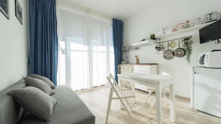 Die Ferienwohnung verfügt über ein Schlafzimmer, ein Wohnzimmer, einen Flachbild-TV und eine gut ausgestattete Küche mit Kühlschrank und Mikrowelle. Ein Badezimmer mit Bidet ist ebenfalls vorhanden. Handtücher und Bettwäsche werden bereitgestellt.