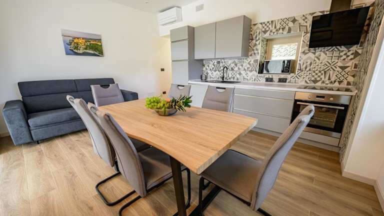Die Zimmer sind mit Klimaanlage, einer voll ausgestatteten Küche mit Essbereich, Flachbild-TV, eigenem Badezimmer mit Bidet, kostenlosen Pflegeprodukten und einem Haartrockner ausgestattet. Zur Küchenausstattung gehören Kühlschrank, Geschirrspüler, Mikrowelle, Kaffeemaschine und Wasserkocher. Bettwäsche, Handtücher und Wäsche werden gemäß den Richtlinien der örtlichen Behörden gewaschen.