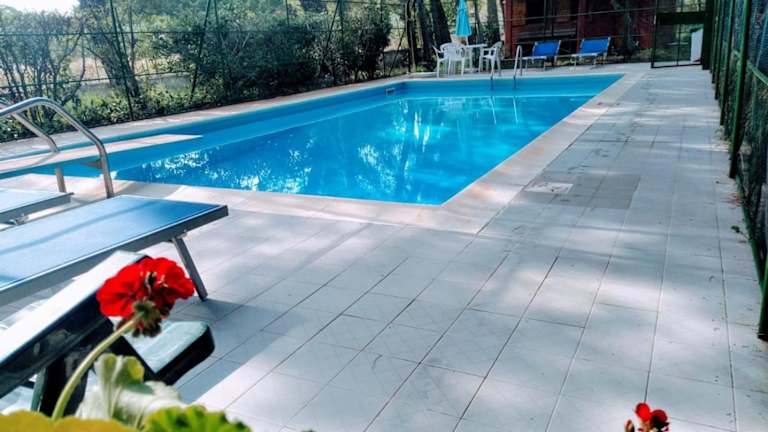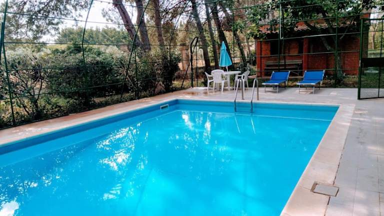 Die Unterkunft verfügt über einen saisonalen Außenpool, der den Gästen an heißen Tagen eine erfrischende Abkühlung bietet. Es gibt auch einen Garten, eine Gemeinschaftslounge und eine Terrasse, auf der die Gäste entspannen und die Umgebung genießen können. Ein Kinderspielplatz ist ebenfalls vorhanden.