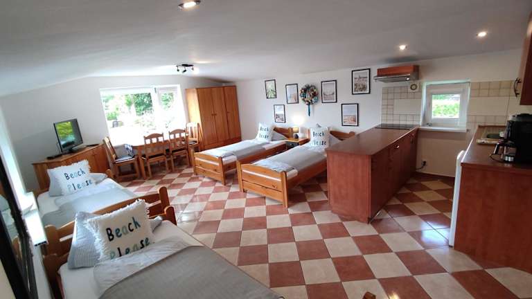 Zieleniewo, 5 km von Kolberg Bahnhof entfernt. 5,4 km von Strandpromenade Kolberg und 5,6 km vom Kolberg Leuchtturm. Nächstgelegener Flughafen ist Stettin-Goleniów, 101 km von der Unterkunft entfernt.