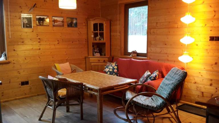 Das Chalet im Agroturystyka Polana Harmonii verfügt über zwei gemütliche Schlafzimmer, ein geräumiges Wohnzimmer und einen Essbereich. Die Küchenzeile ist gut ausgestattet mit einem Backofen und bietet alles, was Sie für die Zubereitung von Mahlzeiten benötigen. Eine Terrasse lädt zum Entspannen im Freien ein.