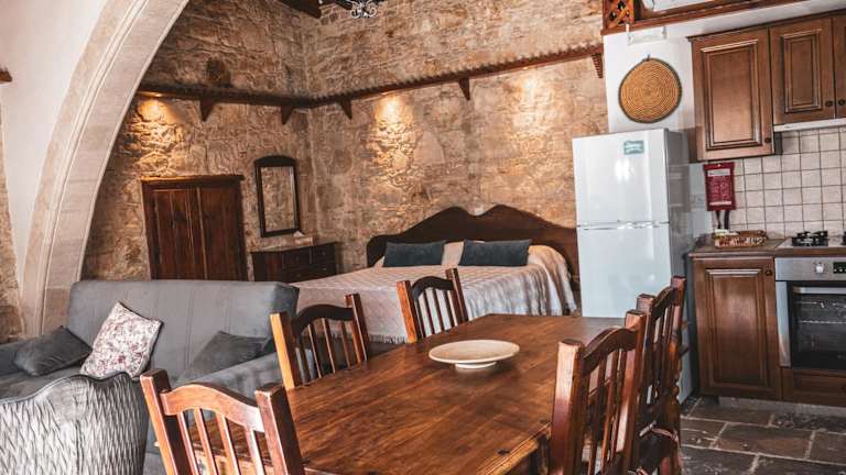 Das Agrovino Lofou ist eine charmante und traditionelle Unterkunft in ruhiger Lage in Lofou, Limassol. Die aus Stein erbaute Unterkunft aus dem Jahre 1794 bietet gemütliche Unterkünfte zur Selbstverpflegung mit Terrasse oder Balkon und kostenfreiem WLAN. Genießen Sie die warme und elegante Einrichtung der Zimmer, die mit Holzmöbeln und erdigen Farben gestaltet sind. Das hoteleigene Restaurant verwöhnt Sie mit einem Frühstücksbuffet und traditioneller regionaler Küche, während das Café Getränke und Snacks anbietet. Kostenfreie öffentliche Parkplätze sind in der Nähe verfügbar.