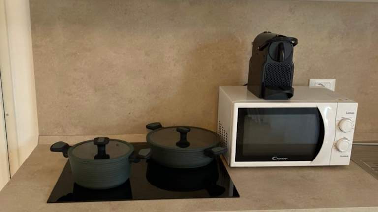 Die Ferienwohnung umfasst 2 Schlafzimmer und ein Bad, das mit einem Bidet, einer Dusche und einem Haartrockner ausgestattet ist. Die Klimaanlage sorgt für angenehme Temperaturen. Die Küche ist ausgestattet mit einem Kühlschrank, einem Geschirrspüler, einer Mikrowelle, einer Kaffeemaschine sowie einem Wasserkocher.
