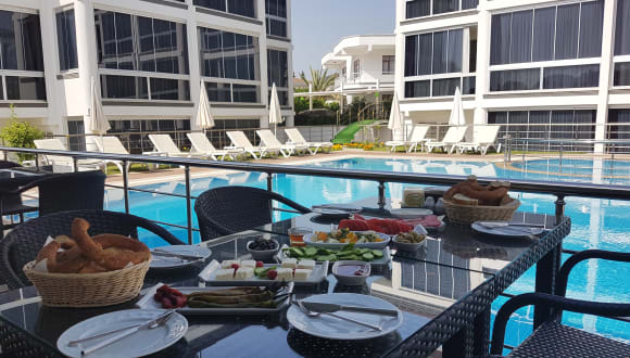 Die AĞVA APART HOTEL Anlage besteht aus drei Wohnhäusern mit jeweils acht Apartments. Vollständig ausgestattete moderne Wohnungen, klimatisiert und teilweise mit Balkon. Großer Pool mit Pool-Bar, Frühstück und weitere Mahlzeiten auf Wunsch, großer Garten zum grillen und entspannen. Leihwagen oder Elektroroller direkt vor Ort buchbar. Kostenloser Transfer zum eigenen Strand mit Beach-Bar. Flughafentransfer auf Anfrage.