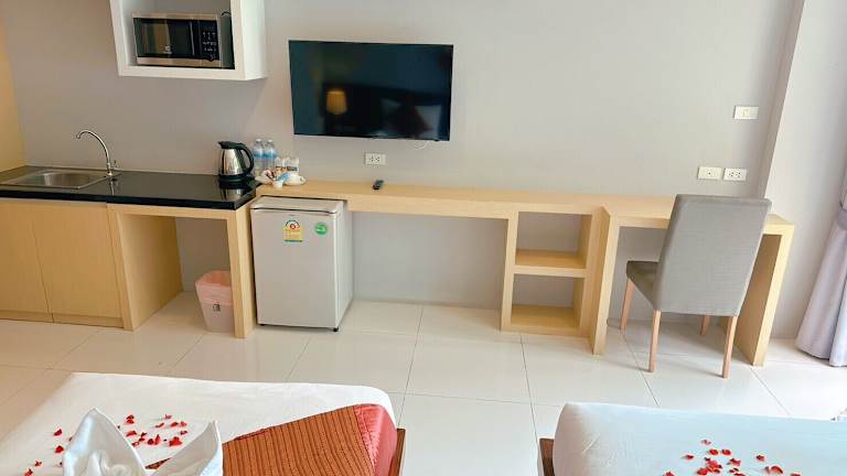 Ahad Suite Aonang ist ein Erwachsenenhotel mit einer ansprechenden Ausstattung. Die Anlage bietet einen Außenpool sowie einen Innenpool und ermöglicht den Gästen Relaxen in einem Garten oder auf einer Terrasse. Die Rezeption ist rund um die Uhr besetzt, und es stehen Tagungsräume zur Verfügung. WLAN ist in den öffentlichen Bereichen kostenfrei verfügbar. Ein Parkservice ist ebenfalls vorhanden, wobei die Parkplätze nach Verfügbarkeit unbewacht zur Verfügung stehen.