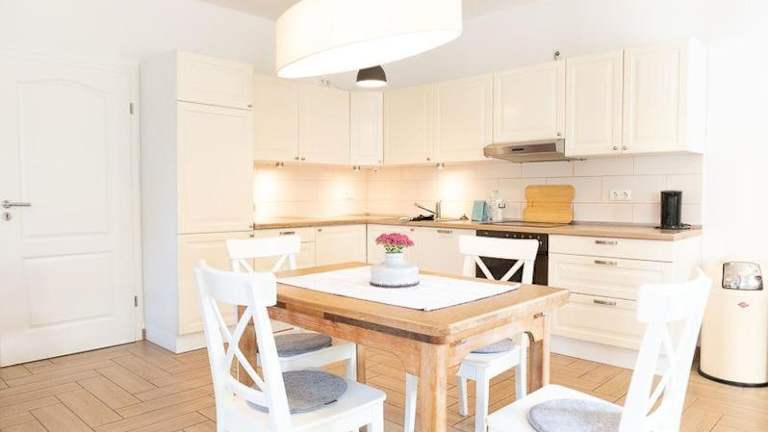 In der Ferienwohnung im Reetdachhaus haben Sie die Möglichkeit, Ihre eigenen Mahlzeiten zuzubereiten. Die voll ausgestattete Küche mit Kühlschrank und Geschirrspüler bietet Ihnen alle Annehmlichkeiten, um Ihre Lieblingsspeisen zuzubereiten. Alternativ können Sie auch die umliegenden Restaurants besuchen und die regionale Küche genießen.