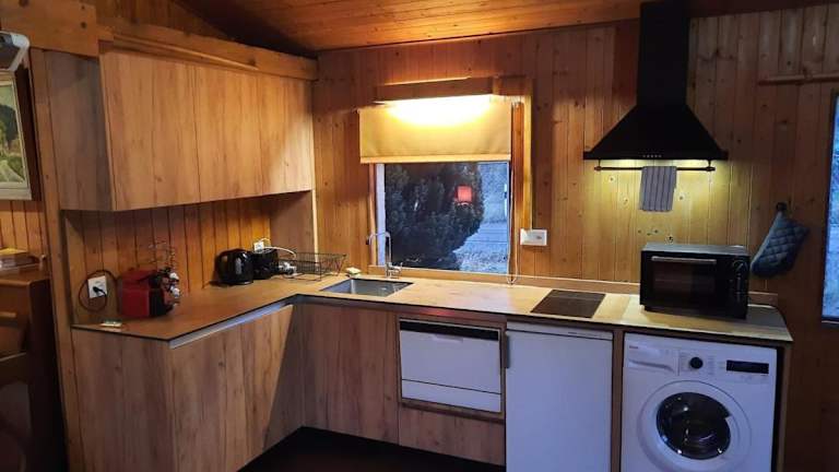 Die Ferienwohnung verfügt über ein Schlafzimmer sowie eine ausgestattete Küche, die mit einem Kühlschrank und einem Geschirrspüler eingerichtet ist.