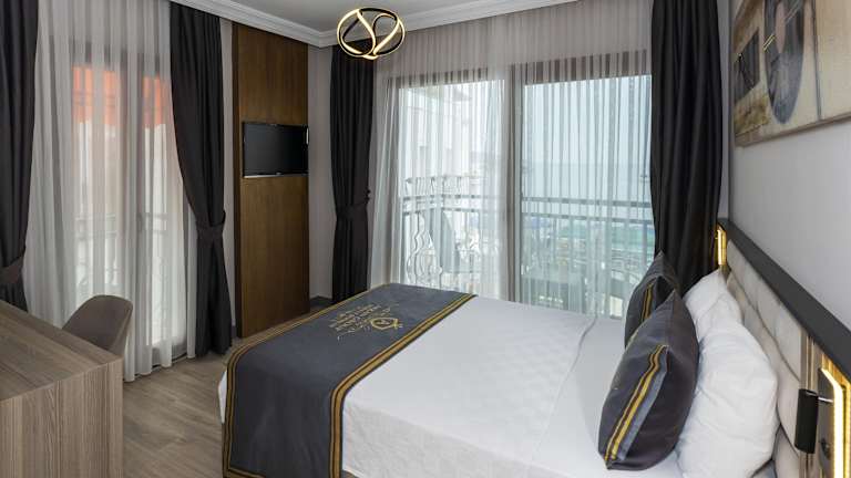 Das Akkan Hotel befindet sich im Zentrum von Bodrum, an einer Straße mit vielen Bars und nur wenige Schritte vom Meer entfernt. Die Lage ist perfekt für Gäste, die das pulsierende Nachtleben der Stadt erkunden möchten. Das Hotel bietet auch einen eigenen Strand, an dem Sie sich entspannen und die Sonne genießen können. In nur 10 Gehminuten erreichen Sie den Busterminal Bodrum und die historische Burg von Bodrum ist nur 500 m entfernt.