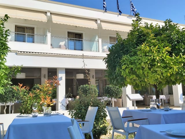 TerraceRestaurant Im exklusiven Restaurant Akrogiali haben wir Räume mit Atmosphäre geschaffen und möchten unseren Gästen für jeden persönlichen Moment das beste Abendessen bieten. Wir begrüßen Sie mit einem einzigartigen Erlebnis mediterraner Aromen mit einer exzellenten Auswahl an Weinen. Innenrestaurant Das Design des offenen Raums des Restaurants, der die Lobby umfasst, wurde durch große Öffnungen in den Fenstern erreicht, die sich zur geräumigen Terrasse des Restaurants mit den Sesseln öffnen, die Sie umarmen. Gehen Sie vor dem Abendessen durch die Loungebar, um einen Aperitif zu genießen, der wie ein Fest aussieht. Garten Genießen Sie ein einzigartiges Frühstück und ein großartiges Abendessen im Garten in einer ruhigen Umgebung. Alle Sinne speisen unter freiem Himmel. Die gesunde Ernährung wird mit lokalen frischen Produkten und vegetarischen Optionen kombiniert, die alle Anforderungen erfüllen. Kulinarisches Erlebnis Das Akrogiali Restaurant bietet ein kulinarisches Erlebnis, das von den Gastgebern unterzeichnet wurde. Diese interpretieren gesunde Rezepte, die reich an Aromen und Geschmacksrichtungen sind, und präsentieren Ihnen innovative Menüs aus der griechischen kreativen Küche. Leckeres Frühstück Tische mit weißen Tischdecken sind nur Möbel, aber diese klaren Linien verbinden Sauberkeit und Komfort. Das Akrogiali Exclusive Hotel unterstreicht den Wert Ihres À-la-carte-Frühstücks in Ihrem Urlaub. Griechisches Frühstück Unser griechisch zertifiziertes Frühstück umfasst griechischen Joghurt, erstklassigen zertifizierten Honig, frisches Obst, Müsli, Nüsse, griechischen Feta, Oliven, Omeletts, Kuchen und viele andere Optionen sowie Kaffee Ihrer Wahl. Gesunde Ernährung Wir bieten Ihnen 30 verschiedene Optionen, die mit frischen und gesunden Produkten kreiert wurden. Die Auswahl, was Sie zum Frühstück essen möchten, wird einige Zeit in Anspruch nehmen, aber es wird sicher ein sehr leckeres Frühstück. Ausgezeichnete Küche Halbpension Genießen Sie Ihr Halbpension-Abendessen, indem Sie aus innovativen, gesunden Menüs wählen, die die Chefköche entwerfen, frische lokale Produkte mit den besten Meeresfrüchten, feinem Fleisch verwenden und einzigartige Speiseerlebnisse mit mediterraner Ernährung bieten. Die 3-Gänge-Menüs umfassen Vorspeisen, frische Salate und Hauptgerichte. Sie haben die Wahl zwischen verschiedenen Gerichten. Getränke sind nicht im Halfboard-Paket enthalten. A la carte Innovative Kreationen aus der griechischen Küche, inspiriert von Tradition, handgemachtem Brot, reinem nativem Olivenöl und Optionen kombiniert mit frischen Produkten für ein besonderes Genusserlebnis kombiniert mit exzellenten griechischen Weinen. Küche mit griechischen Kräutern Genießen Sie eine gesunde Ernährung mit den frischesten Produkten der Region, Fischsuppe Kakavia mit griechischem Safran, authentischen Aromen von gegrilltem Tintenfisch und Basilikum-Pesto aus unserem Garten, dank unserer Liebe zu griechischen Kräutern. Personalisierte Menüs Zu den Menüoptionen gehören Vegetarisch, Risotto, Glutenfrei, Zuckerfrei, Vegan und vieles mehr für ein persönliches Speiseerlebnis. Frischer Fisch Probieren Sie im Restaurant den besten gegrillten Fisch mit einer Auswahl an gesunden und vegetarischen Beilagen. Der frische Fisch wird täglich vom örtlichen Fischer an Ihren Tisch geliefert.
