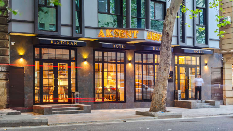 Das Aksent Hotel in Baku ist eine komfortable Unterkunft in günstiger Lage, nur wenige Gehminuten vom Bahnhof entfernt. Mit einem Restaurant, einer Bar und kostenfreiem WLAN bietet das Hotel alles, was Sie für einen angenehmen Aufenthalt benötigen. Die klimatisierten Zimmer sind gut ausgestattet und verfügen über ein eigenes Bad. Genießen Sie das kontinentale oder Halal-Frühstück jeden Morgen, bevor Sie die nahegelegenen Sehenswürdigkeiten erkunden.