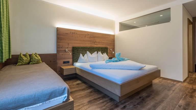 Unser Hotel bietet Ihnen 16 Zimmer (Einzel-, Doppel- und Mehrbettzimmer), sowie 9 Appartements für 4 bis 5 Personen. Die Zimmer sind ausgestattet mit Doppelbett, Holzboden, Dusche/WC, Flatscreen-TV, Safe, Kühlschrank und großteils Balkon.