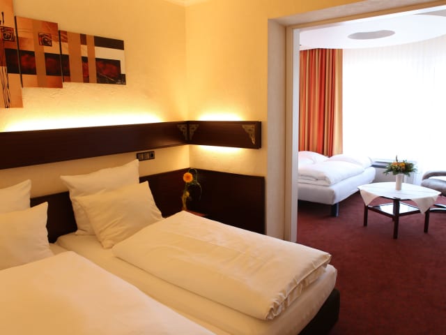 Alle Zimmer verfügen über einen Arbeitsbereich, kostenfreies WLAN, einen Faxanschluss, ein Kabel-TV und eine Minibar. Ebenfalls sind alle Zimmer Nichtraucherzimmer, es gibt einen separaten Raucherbereich im Hauptgebäude. Unter der Kategorie Bilder sehen Sie einige unserer Zimmer. Zur Verfügung stehen Einzelzimmer, Doppel- und Twinbettzimmer und Familienzimmer.