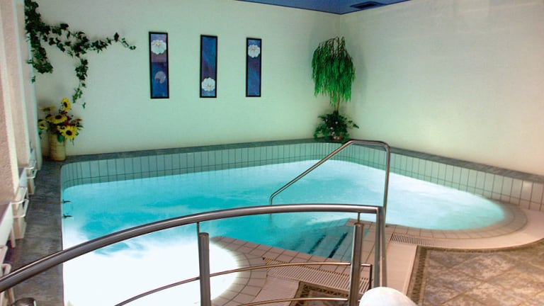 In der großzügig ausgestatteten Wellnessbereich finden Sie Ihre wohl verdiente Entspannung: Ein Schwimmbad mit Gegenstromanlage und Wassermassage, die Erlebnisdusche, Sauna und Solarium sorgen für das ganzkörperliche Wohlbefinden.