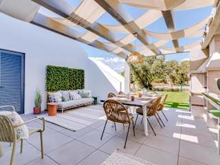 Die AL - Boho Chic Villa Country Club bietet moderne Übernachtungsmöglichkeiten mit einem Außenpool, einem Garten und einer Terrasse. Die Unterkunft bietet kostenloses WLAN und ermöglicht den Blick auf den Garten. Ein kostenloser Privatparkplatz ist ebenfalls verfügbar.