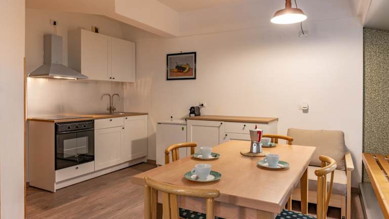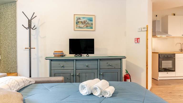 Die Ferienwohnung verfügt über ein Schlafzimmer, ein Wohnzimmer mit einem Flachbild-TV, eine gut ausgestattete Küche sowie ein Badezimmer mit Bidet und Dusche. Eine Veranda oder ein Patio ergänzt die Ausstattung und bietet Bergblick.